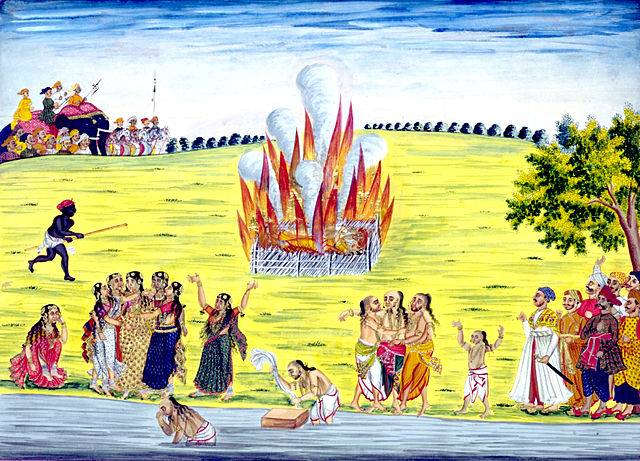 (Photo: Practice of widow-burning or sati/suttee -painted circa 1800, source: Wikimedia)